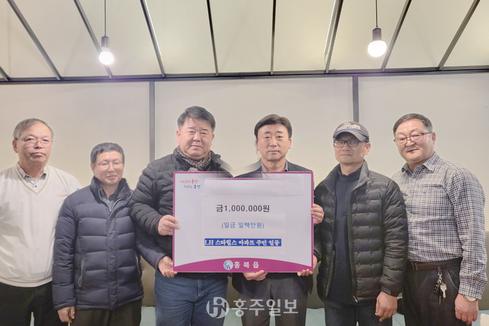 홍북읍 소재 LH스타힐스 아파트 주민들이 지역의 소외된 이웃들을 위해 지난달 31일 성금 100만 원을 기탁했다.<사진>