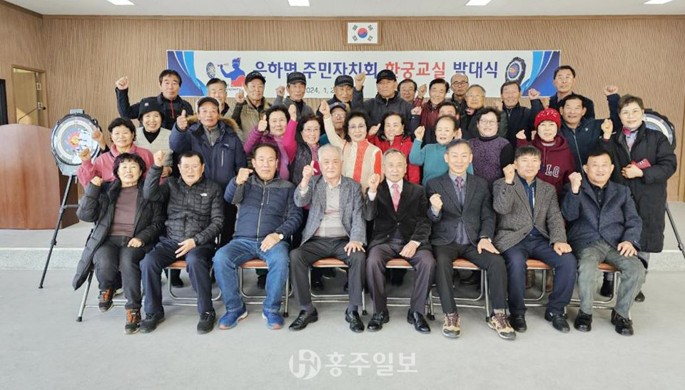 은하면은 지난달 29일 은하면 주민자치센터에서 조종수 은하면장, 이정식 주민자치회장, 조화원 홍성군노인회 지회장, 오광석 은하면 노인회장 등 50여 명이 참석한 가운데 군내 최초로 은하면주민자치회 한궁교실 발대식을 개최했다.<사진>