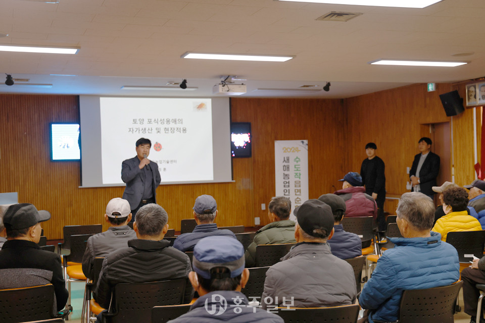 홍성군농업기술센터(소장 이승복)는 장곡면행정복지센터 2층 회의실에서 농업경영인 100여 명이 참석한 가운데 새해농업인 실용교육을 1부·2부로 나눠 진행했다.<사진>