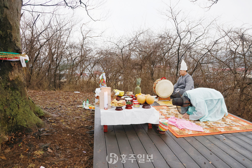 광천읍의 옹암리에서는 영산당 당제가 15일 오전 10시부터 열렸다. 지역주민 100여 명이 참석한 이번 행사는 마을의 안녕과 주민의 무사 안전을 기원하는 유교식 제사와 박수무당 축원 등으로 진행됐다.<사진>