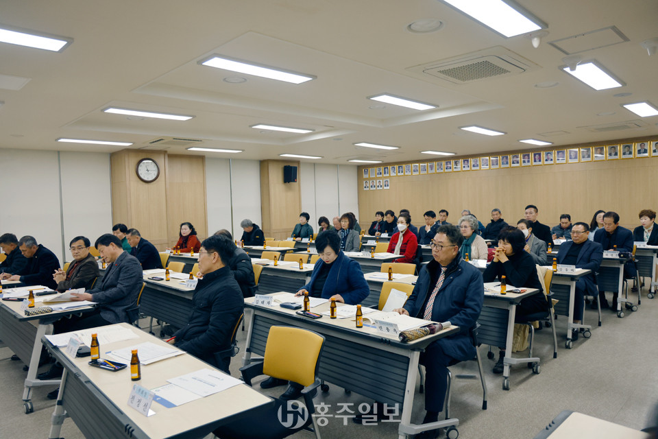 홍성읍주민자치회(회장 성낙홍)는 19일 홍성읍행정복지센터 2층 회의실에서 위원 40여 명이 참석한 가운데 정기회의를 진행했다.<사진>