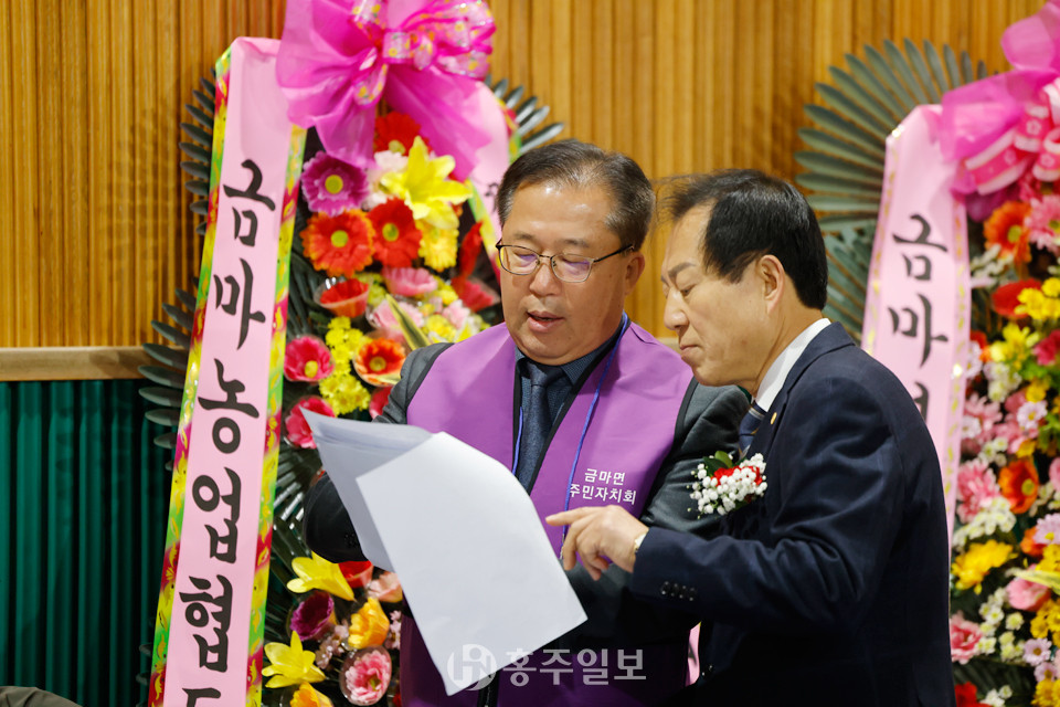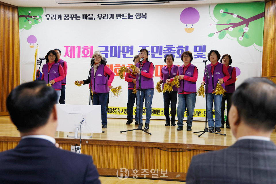 이날 행사장은 주민총회 참석하기 위해 현장을 찾은 금마면민들로 인산인해를 이뤘다. 주민자치센터 노래교실의 식전공연으로 시작된 이날 행사는 △유공자 표창 △개회사 △환영사 △축사 △축하공연 △의제설명 △주민투표 순으로 진행됐다.