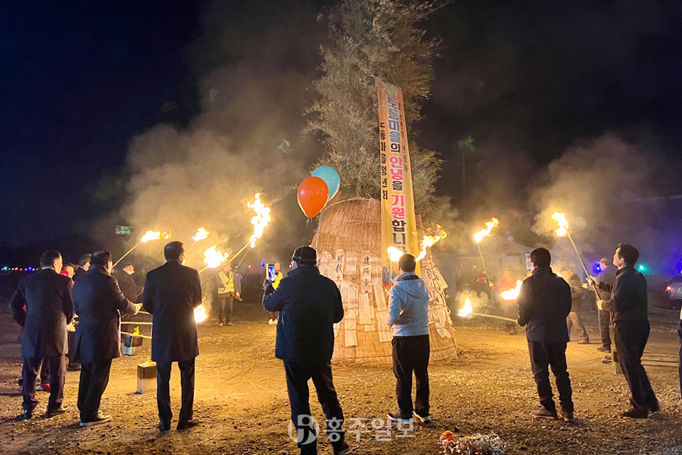 지난 24일 ‘풍년기원제’에서 결성면 형산리 주교마을 김연만 이장은 “이번 달집태우기 행사를 통해 마을 주민들의 건강과 행복을 기원하고, 마을 전체가 하나 돼 더욱 강력한 결속력을 갖게 됐다”고 말했다.