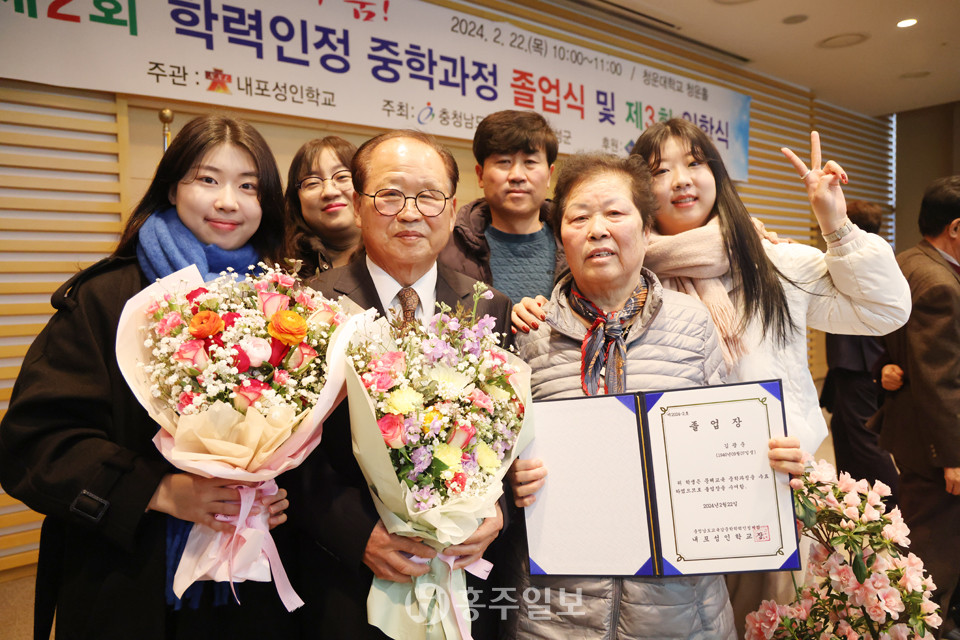 최광묵 내포인성학교 교장은 “문해교육을 시작한 지 10년이 지났지만, 졸업식 행사를 할 때마다 기쁨과 아쉬움이 교차하는 순간을 맞이한다. 중등교육과정을 마치고 고등교육과정을 계속 이어나가며 학구열을 불태우는 20명의 어르신들께 깊은 감사와 축하의 말씀을 전한다”고 말했다.
