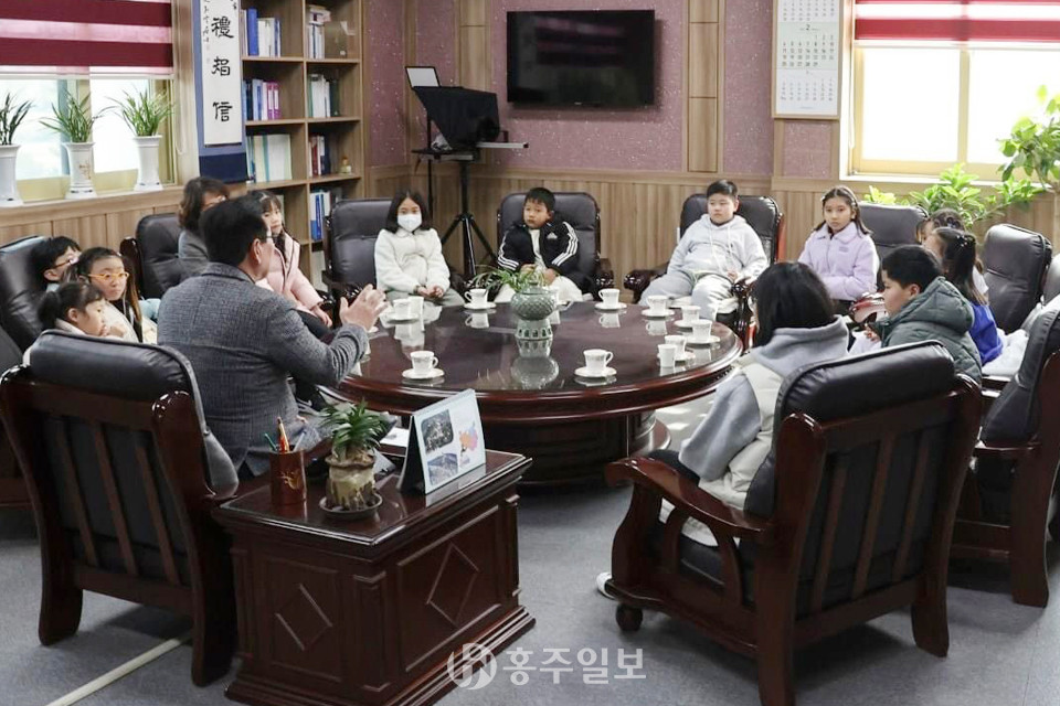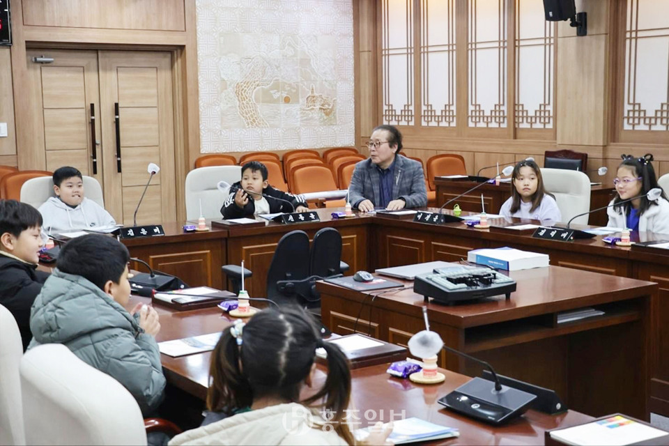 이날 홍성군의회 장재석 부의장은 어린이들과 다과를 함께하며 의회 역할과 하는 일에 대해 설명하고, 이정희 의원의 사회로 아이들이 일일 홍성군의회 의원이 돼 모의 회의를 진행해 보기도 했다.