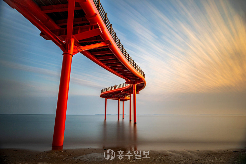 남당항 바로 옆에 위치한 ‘남당 노을전망대’는 아름다움 그 자체다. 금빛 모래사장이 길게 펼쳐져 있는 바닷가 중간에 세워져 있는 노을전망대는 빨간색으로 도색돼 바다색과 인근 산의 초록색이 대비돼 눈에 띈다. 또, 일몰 때에는 붉게 물드는 하늘과 어우러져 그 또한 멋진 풍경을 보여준다.