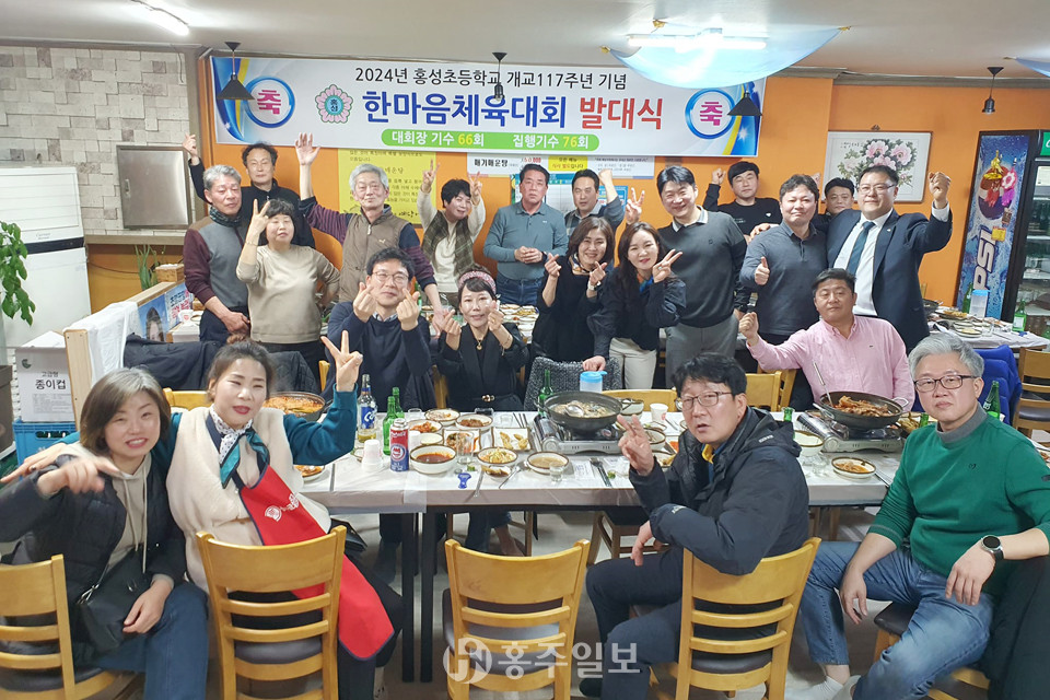 홍성초등학교총동창회(회장 박문수)가 주최하고 제66·76회 동창회(대회장 김동윤·집행위원장 전봉수)가 주관으로 오는 4월 28일 개최될 ‘홍성초등학교 개교117주년 기념 한마음체육대회’ 발대식이 지난 2일 홍성읍 모처에서 열렸다.<사진>