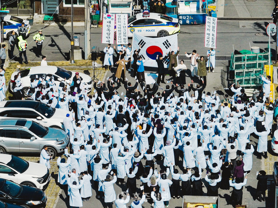 사진은 200여 명의 참석자들이 태극기를 들고 독립만세운동이 있었던 광천시장까지 거리행진을 하며 “대한민국 만세”를 외치고, 105년 전 광천에서의 뜨거웠던 그날을 재현하며 조국의 독립을 위해 헌신한 애국지사들의 뜻을 기리는 모습.