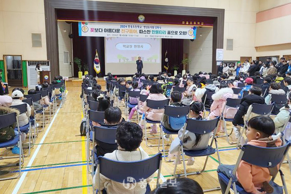 한울초등학교(교장 조국현)는 지난 4일 한울관에서 병설유치원·초등학교 1학년 입학식을 실시했다.