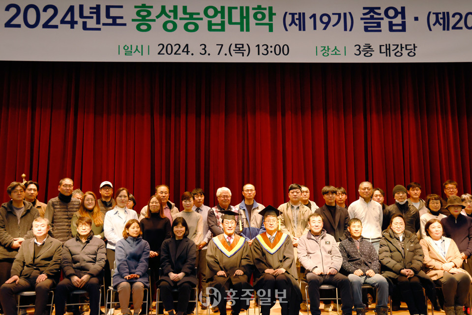 홍성군농업기술센터(소장 이승복)는 7일 센터 3층 대강장에서 홍성농업대학 제19기 졸업식과 제20기 입학식을 동시에 개최했다.