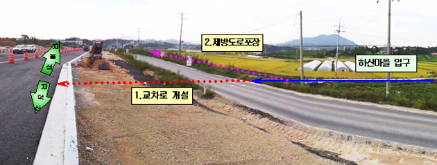 홍성-덕산 간 신설 도로가 생기면서 홍북면 상하리 하산마을 주민들은 진입도로가 단절됐다며 교차로 설치를 요구하고 나섰다. 기존에는 지방도에서 하산마을에 진입하기가 수월했으나, 신설 지방도가 개설되면서 기존 마을 안길과 연결도로가 없어 현재 마을 진출입 시 상당거리를 우회하여 통행해야 할 실정이다. 따라서 주민들은 신설 지방도 609호와 하산마을 진입로가 단절되지 않도록 교차로 설치가 필요하다는 주장이다.