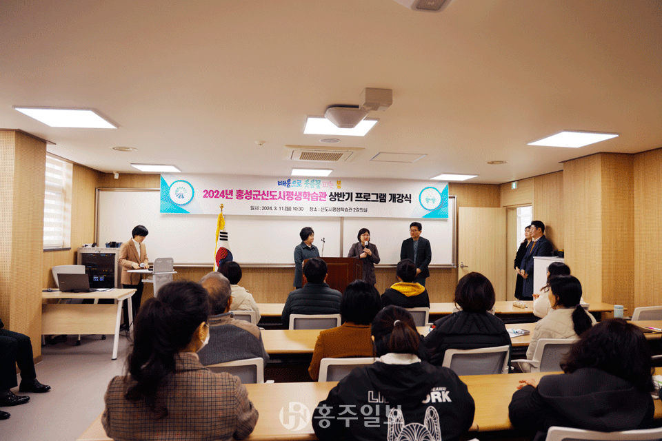 2024년 상반기 신도시평생학습관 개강식이 11일 신도시평생학습관 2층 강의실에서 이용록 군수, 이정윤 홍성군의회 의원, 이선용 군 경제문화농업국장, 김두철 홍북읍장을 비롯한 평생학습 수강생 40여 명이 참석한 가운데 성황리에 마쳤다.<사진>