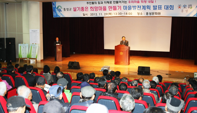 홍성군은 3농혁신의 역점추진과제 중 하나인 '살기 좋은 희망마을 만들기 사업'의 원활한 추진을 위해 지난 29일 홍성문화원에서 '살기 좋은 희망마을 만들기 마을발전계획 발표대회'를 개최했다.