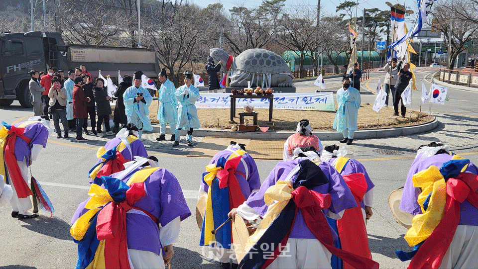풍물패가 구항면 행정복지센터에서 시작해 보건소, 그리고 구항농협까지 이어지면서 흥겨운 풍물 소리가 울려 퍼졌다. 그리고 풍물패가 오봉회전교차로에 있는 ‘거북상’에 도착하자, 거북마을의 전영수 거북상보존회장이 기원제를 이끌었다.