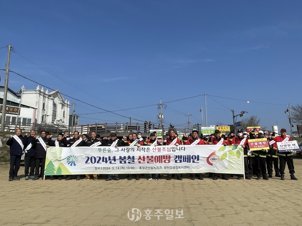 홍성군은 2024년 봄철 대형산불 특별대책 기간(3월 19일~4월 30일)을 맞아 홍성군 산림녹지과, 산불전문예방진화대, 광천읍 명예산불감시원, 광천읍 기관단체 회원, 광천읍 직원 등 100여 명이 참석한 가운데, 광천전통시장 일원에서 산불 예방 캠페인을 지난 14일 실시했다.<사진>