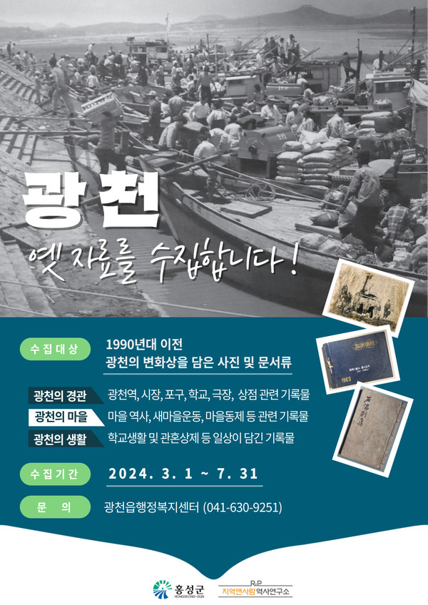 광천읍에서 광천의 변화상을 담은 사진, 문서류 등 옛 자료를 오는 7월 말까지 수집한다고 19일 밝혔다.