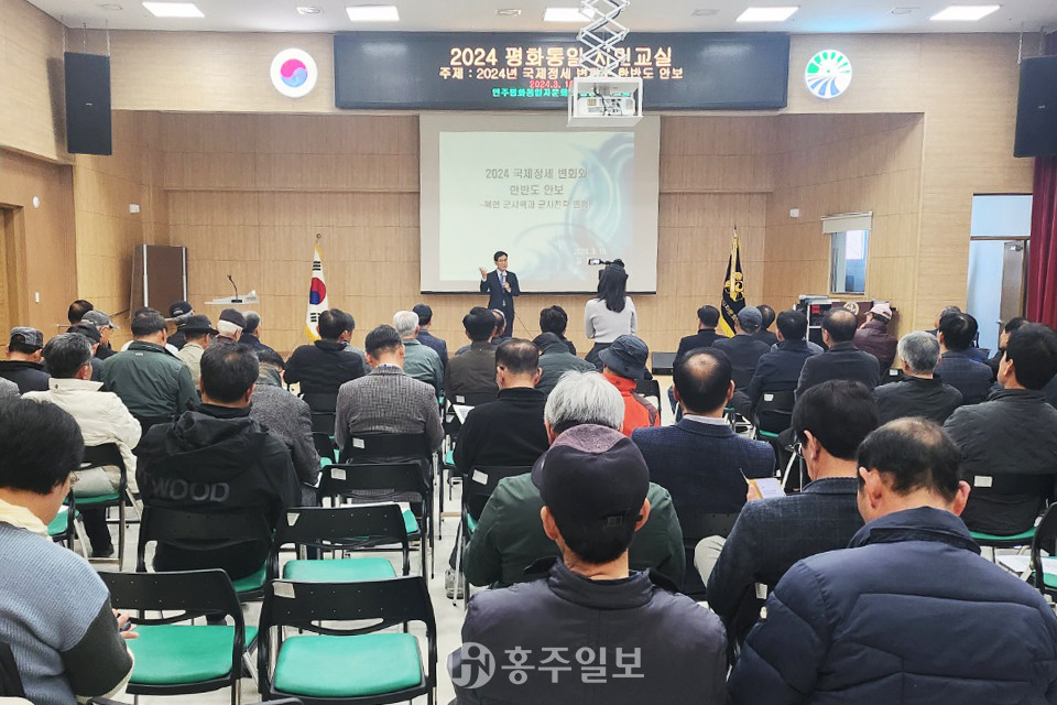 민주평화통일자문회의 홍성군협의회(회장 박만)는 지난 18일 홍성군노인회관에서 자문위원, 행정동우회, 지역주민 등 100여 명이 참석한 가운데 ‘2024 평화통일 시민교실’을 개최했다.<사진>