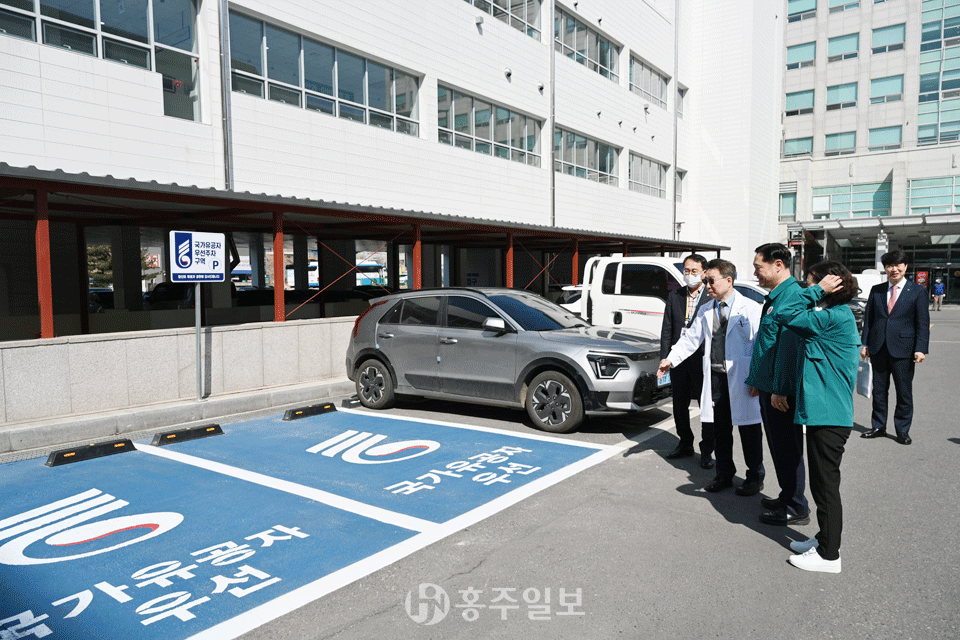 충청남도 홍성의료원(원장 김건식)은 지난 14일 국가보훈부 이희완 차관이 방문한 가운데 전국 지방의료원 중 최초로 국가유공자를 위한 전용 주차구역을 지정했다. 이번 조치는 국가를 위해 헌신한 유공자들에 대한 예우를 표하기 위한 것이다.