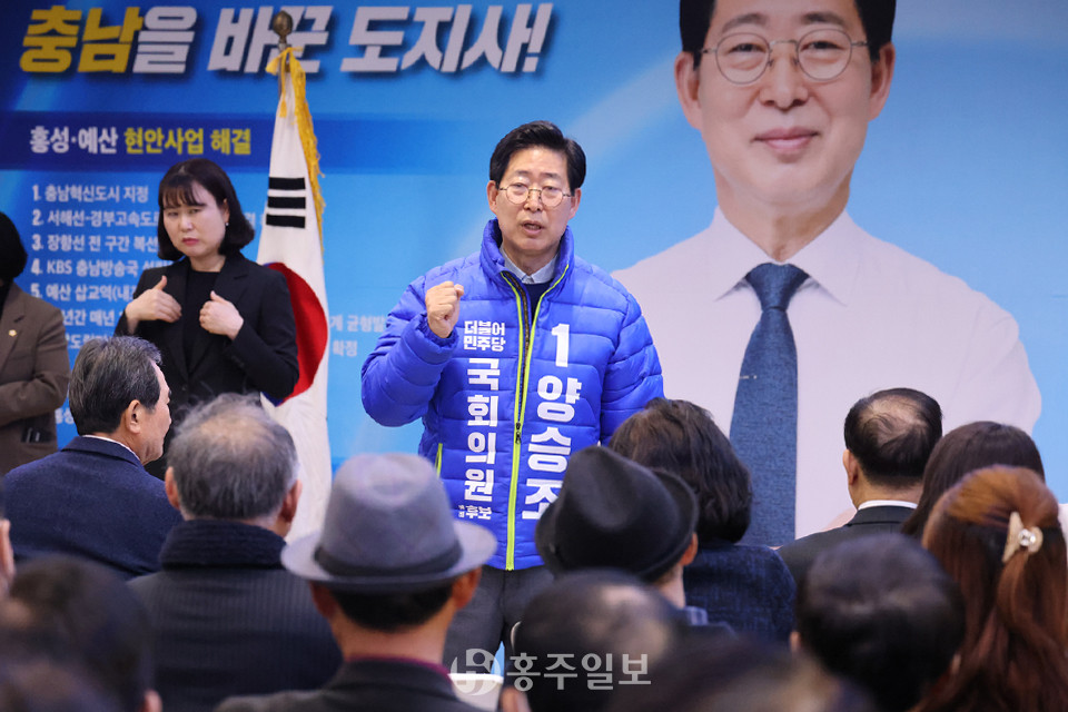 이 자리에서 김 위원장은 “예산·홍성을 제일 잘 아는 후보는 도지사를 역임한 양승조뿐”이라며 “양 후보는 이미 홍성·예산의 발전 청사진을 그린, 준비된 후보”라고 양 후보를 치켜세웠다.