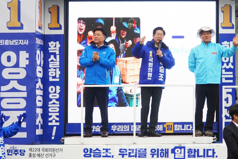 4·10 총선 공식 선거운동이 시작된 첫날, 양승조 더불어민주당 후보(홍성군예산군선거구)는 예산과 홍성에 새로운 변화의 바람을 일으키겠다는 필승 각오를 다졌다.