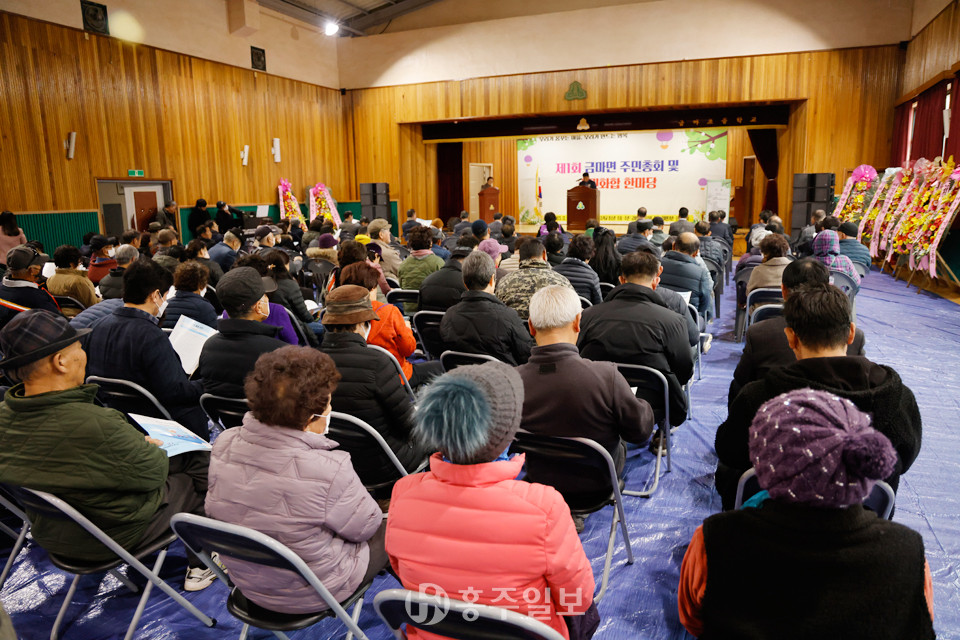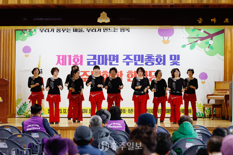 이날 행사장은 주민총회 참석하기 위해 현장을 찾은 금마면민들로 인산인해를 이뤘다. 주민자치센터 노래교실의 식전공연으로 시작된 이날 행사는 △유공자 표창 △개회사 △환영사 △축사 △축하공연 △의제설명 △주민투표 순으로 진행됐다.