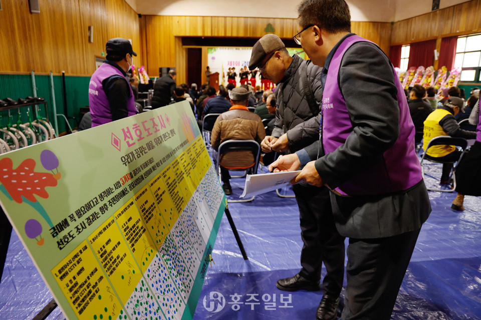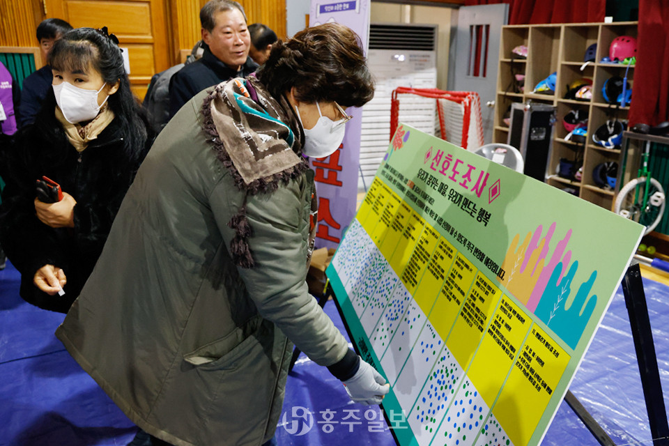 와 함께 △홍양저수지 산책로 및 주변 시설 방범용 CCTV 설치 △유기농 홍성 딸기로 건강백세를! 사업 △금마면 주민 문패 및 우체통 설치 △놀이로 만나는 금마면 꿈나무 문화의 날 △소식지 금마소담이(금마면 소식을 담은 이야기) 제작 △증손자까지 함께하는 4代 행복회관 조성 △국도변 마을진입로 입구 방범용 CCTV 설치 △어르신을 위한 마을회관 안전의자 보급 △맨발 걷기 황토길 조성 등 11개 의제가 골고루 주민들의 표를 받았다.