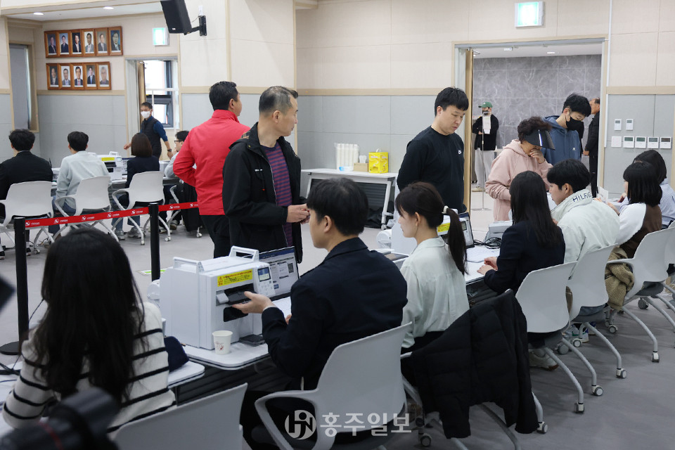 현재 홍성군은 8만 4299명의 선거인수 가운데 9780명이 사전투표를 마쳤고, 예산군은 7만 325명의 선거인수 가운데 8622명이 사전투표를 마쳤다.