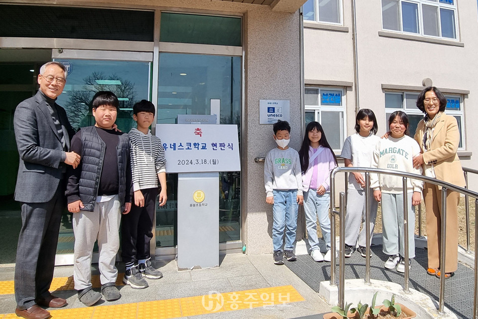 지난해 유네스코학교 신규학교로 지정돼 1년간 예비회원학교로 운영됐던 용봉초등학교(교장 한만희)가 지난달 18일 현판거치식을 갖고 본격적인 유네스코학교 활동을 전개하게 됐다.<사진>