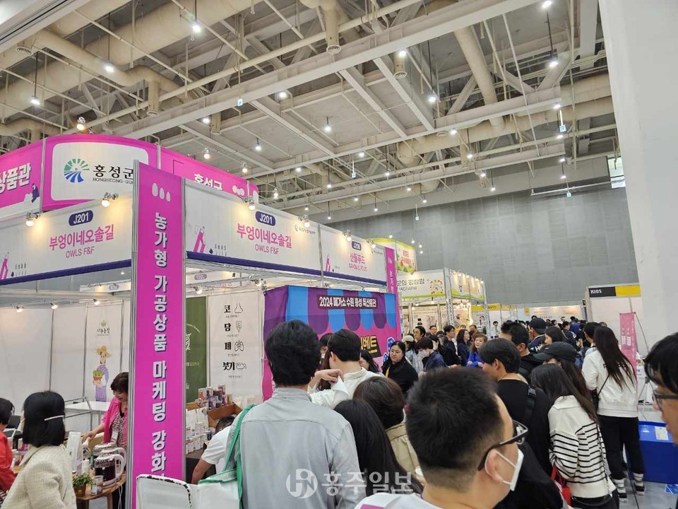 홍성군농업기술센터가 지난 11~14일까지 수원컨벤션센터에서 열린 ‘수원 메가쇼 2024 시즌1’에 참가해 지역 농가형 가공업체들의 우수한 가공식품을 선보였다.<사진>