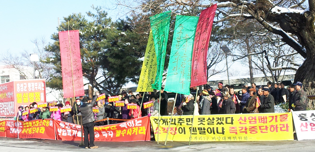4개 마을(학계리1·2구 인근) 중심으로 꾸려진 비상대책위원회(위원장 강문규) 주민 300여명은 지난 10일 오전 10시 군청 앞에서 집회를 열고 일반사업장 폐기물소각장시설물에 대한 인허가를 전면 백지화할 것을 요구했다. 주민들은 "생존권 및 재산권을 침해당하고 검증 안 된 소각장시설물은 주민안전을 책임질 수 없으며, 홍성군은 밀실행정으로 주민의 알권리를 박탈하고 기만했다"며 "홍성군의회의 행정기관 관리감독 무능함을 규탄한다"고 주장했다.