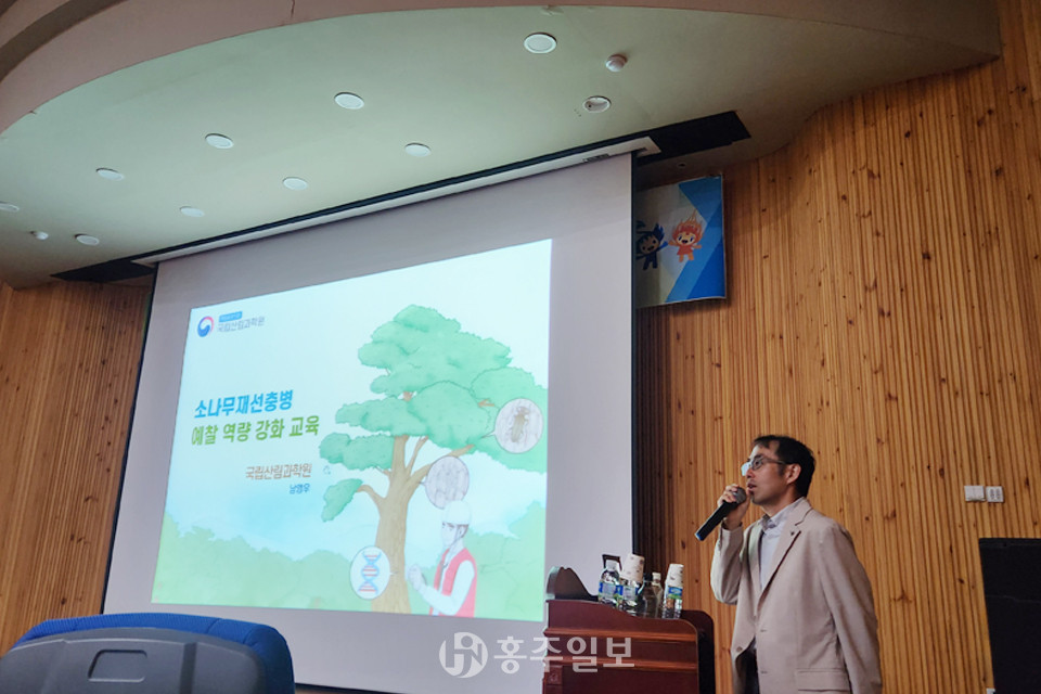 충남도 산림자원연구소는 기후변화에 따른 매개충 활동 증가로 전국적으로 급격히 확산되고 있는 소나무재선충병에 대비하기 위해 ‘예찰·방제 기술 역량 강화 교육’을 개최했다고 지난 9일 발표했다. 이 교육은 소나무재선충병 담당 공무원·예찰조사원 등 80여 명을 대상으로 진행됐으며, 재선충병 방제·예찰의 전문성과 실무 능력 향상을 목적으로 마련됐다.