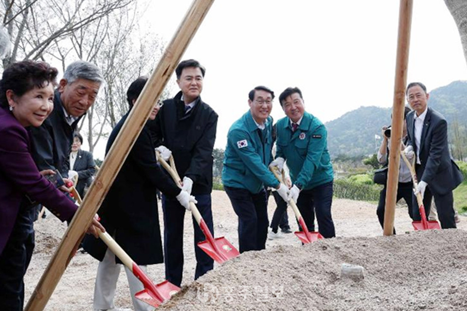 충남 내포신도시에 위치한 홍예공원이 명품화 사업의 일환으로 도민 참여 숲에 첫 헌수목을 심으며 새로운 장을 열었다. 지난 11일, 김태흠 충남도지사와 성우종 충남사회복지공동모금회장을 포함한 300여 명의 참석자들이 이 특별한 순간에 함께 했다. 이 행사는 홍예공원을 지역의 대표적인 명품공원으로 탈바꿈시키기 위한 홍예공원 명품화 사업의 첫 단추를 끼우는 것이다.<사진>
