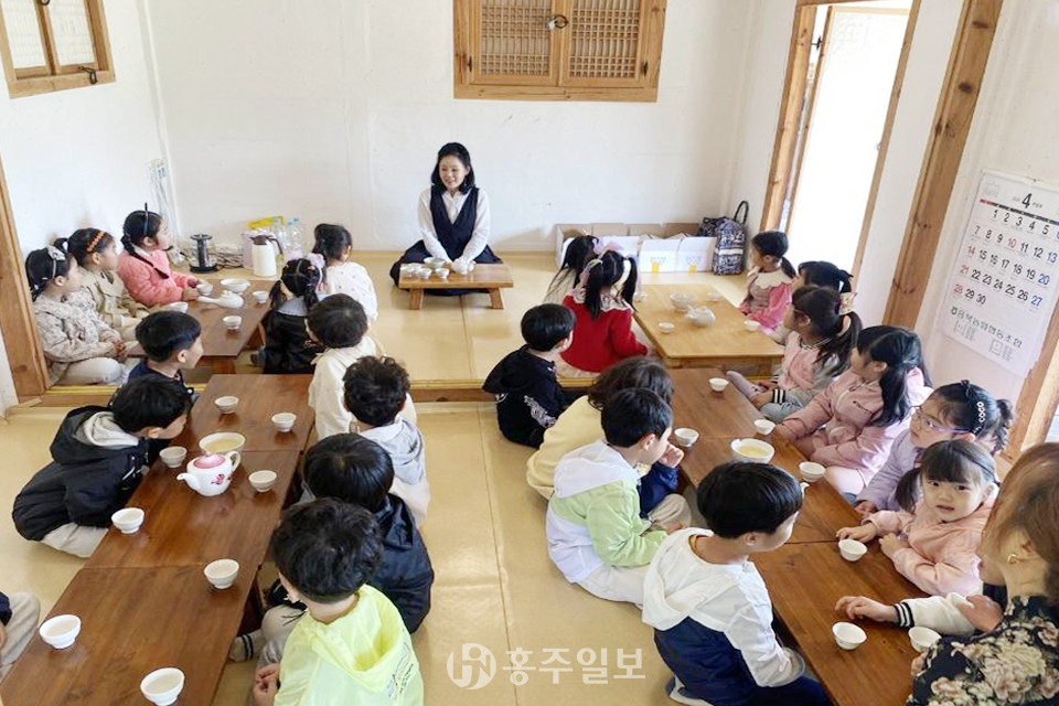 홍북읍주민자치회(회장 정윤)는 지난 17일 어린이 인성교육의 일환으로 풀꽃향기유치원 풀꽃반 아동 25명과 함께 고암 이응노 선생의 생가를 방문해 다도와 명상 체험을 실시했다.<사진>