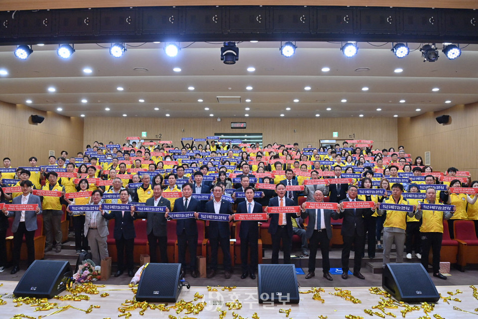 김태흠 지사와 시군 청소년유해환경감시단, 도·시군 관계 공무원 등 250여 명이 참석한 가운데 연 이번 출범식은 식전 공연, 홍보영상 시청, 공로패 수여, 지정서 수여, 단기 전달 등의 순으로 진행했다.