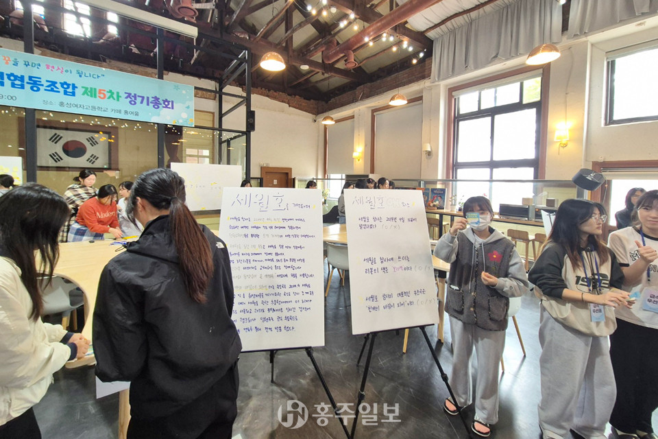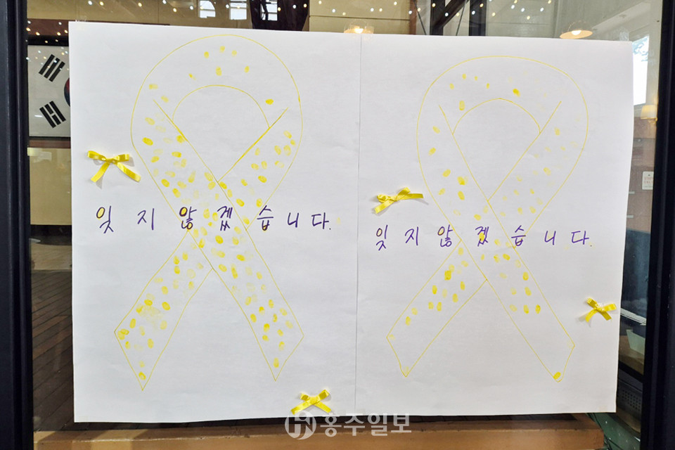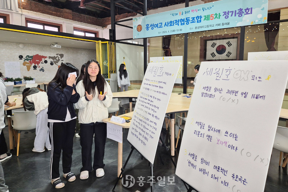 홍성여자고등학교(교장 김구슬)는 지난 16일 교내 홍여울 카페에서 세월호 10주기를 맞아 세월호 추모하는 특별한 행사를 개최했다.<사진>