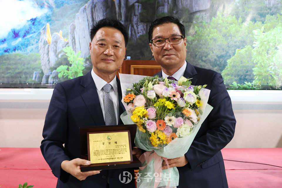 축사에 나선 이용록 홍성군수는 “지난 임기간 협회를 이끌며 지역발전에 이바지한 이환진 이임회장을 비롯한 집행부에 격려의 박수를 보내며, 새롭게 취임하신 이순하 취임회장과 집행부에겐 격려의 박수를 보낸다”며 “하루가 다르게 변화하는 홍성군 발전에 민을 대표해 협조해 주신 협회에 감사드리며, 주민의 목소리를 대변하는 협회로서 날로 발전하길 기대한다”고 전했다.