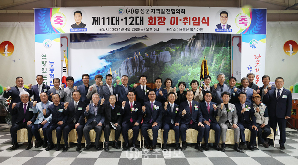 홍성군지역발전협의회(이임회장 이환진·취임회장 이순하)가 지난달 26일 용봉산 돌산가든 연회장에서 제11·12대 회장 이·취임식을 개최했다.