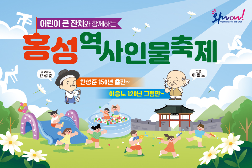 명고명무 한성준 선생의 탄생 150주년과 고암 이응노 화백의 탄생 120주년을 기념하며, 두 역사 인물을 주인공으로 오는 5월 4일부터 5일까지 이틀간 홍성군 홍주읍성 일원에서 펼쳐지는 이번 축제에는 어린이들에게 웃음과 행복을 선사할 수 있는 프로그램과 함께 홍성 역사인물들의 발자취를 따라갈 수 있는 공연·체험프로그램이 다채롭게 마련된다.