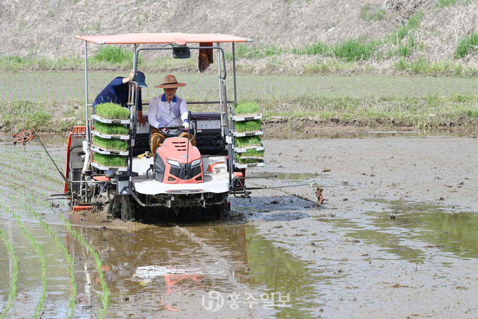 올해도 첫 모내기에 참여한 이용록 홍성군수는 직접 모판을 나르고 이앙기 몰며 모내기 영농체험을 하고, 농업현장의 애로사항을 청취하며 농업인과 관계자들을 격려하기도 했다.