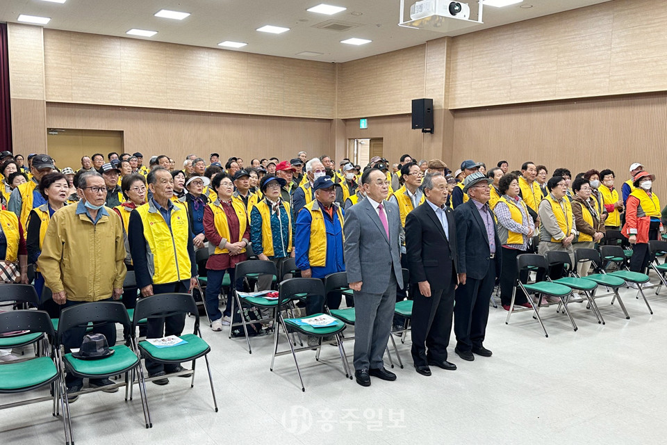 대한노인회 홍성군지회(지회장 조화원)는 지난달 22일 대강당에서 대한노인회 충남연합회 강춘식연합회장을 비롯한 8개 봉사단원 160명이 전원 참석한 가운데 ‘2024년 노인자원봉사자 필수교육’을 실시했다.<사진>