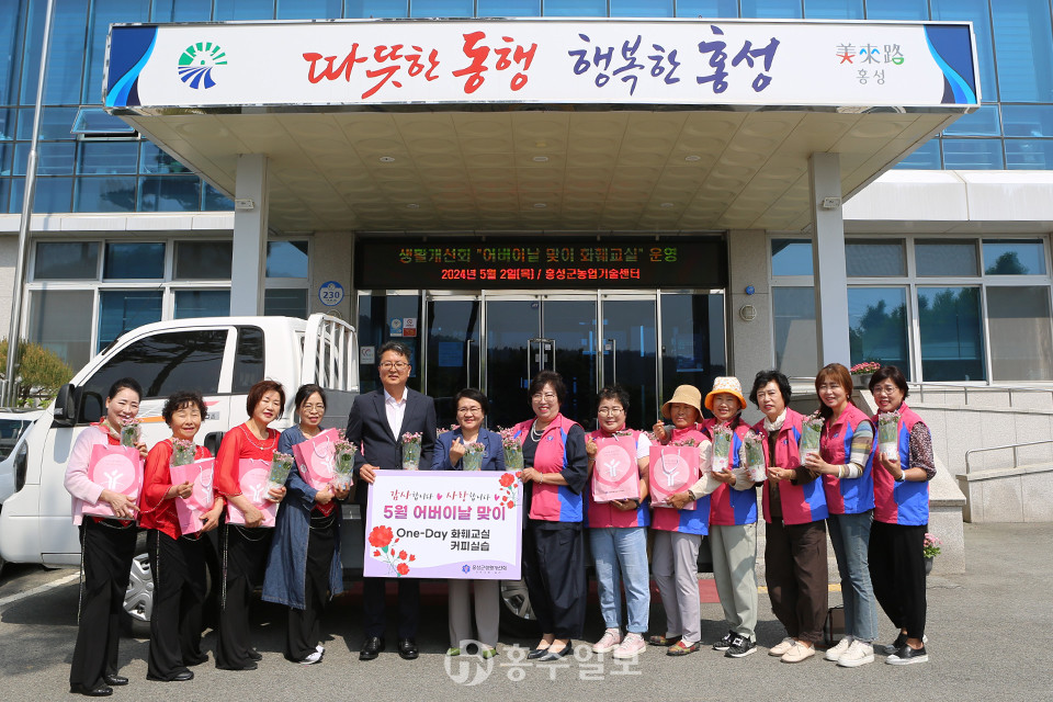 생활개선홍성군연합회(회장 김양순)가 어버이날을 앞두고 지난 2일 고령노인들을 위한 ‘어르신 화훼교실’을 운영했다.<사진>