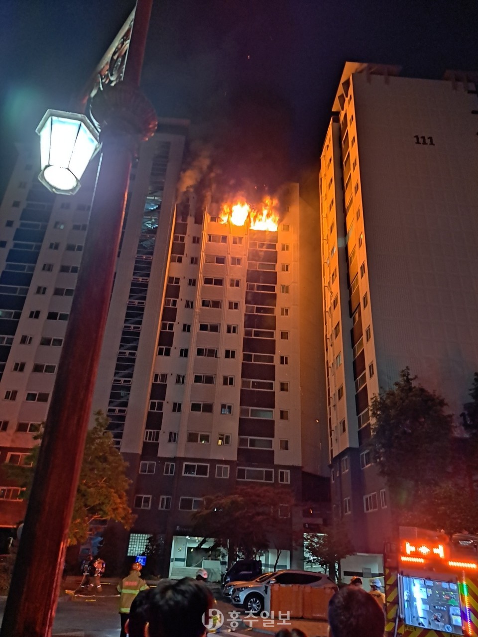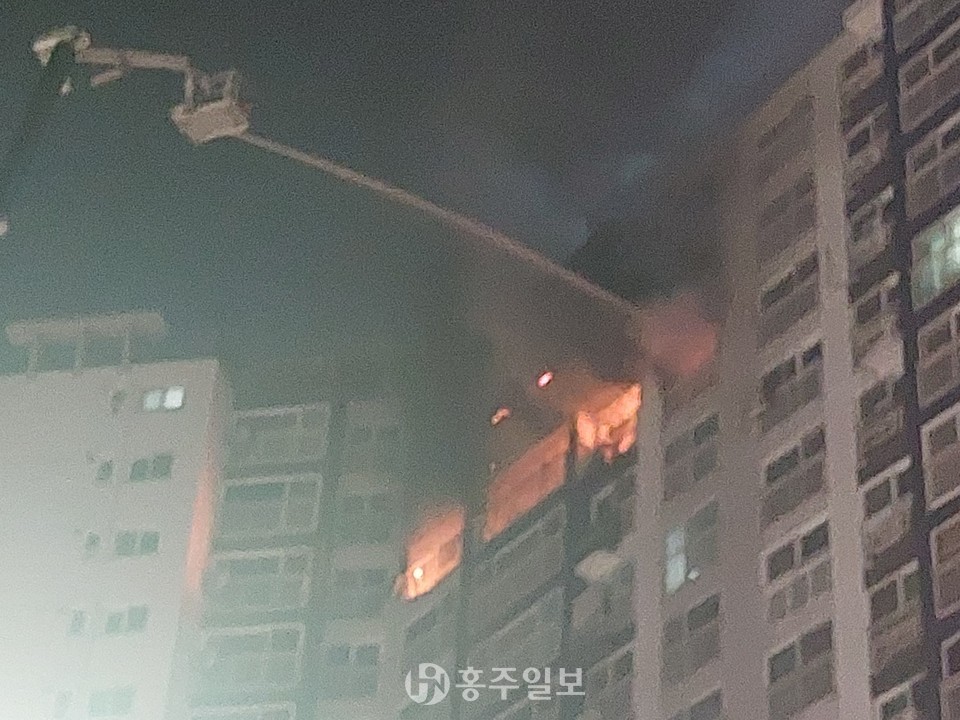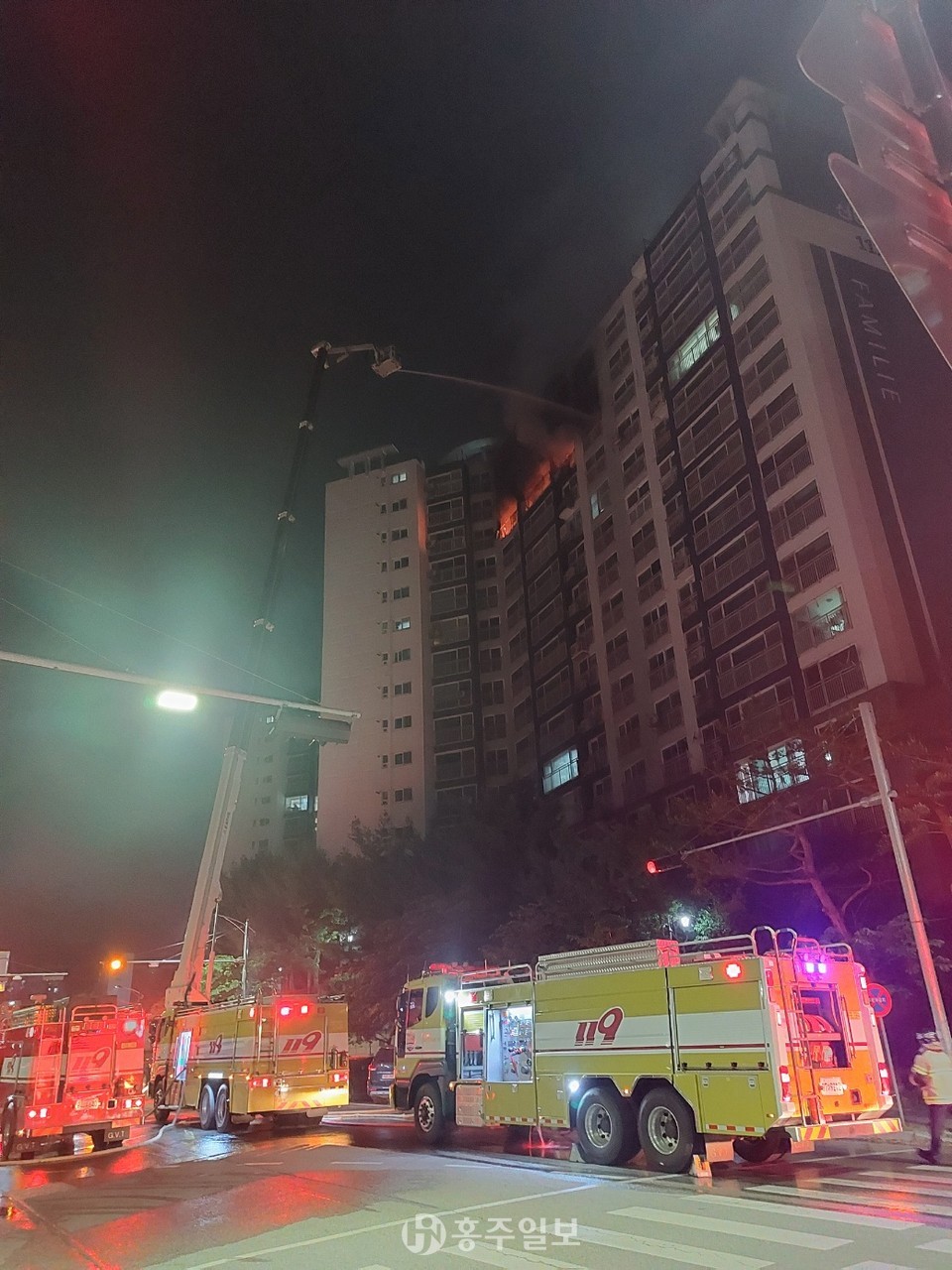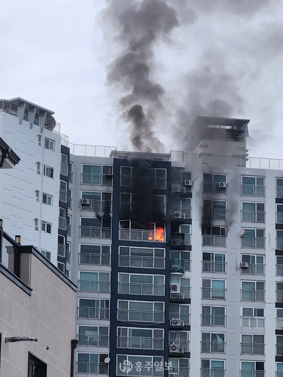 충남 홍성군 홍성읍 고암리 신동아파밀리에아파트에서 화재가 발생했다.