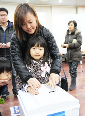 18대 대통령선거가 지난 19일 홍성 35개 투표소에서 일제히 시작됐다. 투표소는 점심때가 가까워져 갈수록 더 많아지는 유권자로 북적였다. 이날 홍성군내 대다수의 투표소는 정오 즈음까지 유권자들의 대기열이 투표소 밖까지 길게 줄을 이었으며, 17대 대선 투표나 지난 19대 총선에서는 찾아볼 수 없었던 투표열기로 뜨거웠다. 가족들과 함께 투표장을 찾은 김동열(87세) 할머니. 침착하게 투표를 마친 후 "내가 뽑은 후보가 대통령이 될 게 확실하다"며 함박웃음을 지었다.