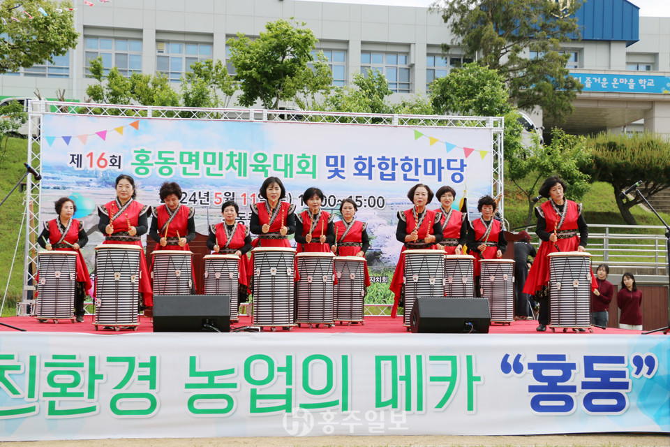 이번 홍동면민 체육대회·화합한마당은 홍동면 풍물보존회의 풍물놀이와 주민자치프로그램 난타팀 공연으로 시작해 개회식, 체육행사, 면민노래자랑 순으로 진행됐다. 또한 주민자치프로그램 라인댄스팀과 여울, 유준, 윤서원 등 초대가수의 공연으로 행사의 분위기는 더욱 풍성해졌다.