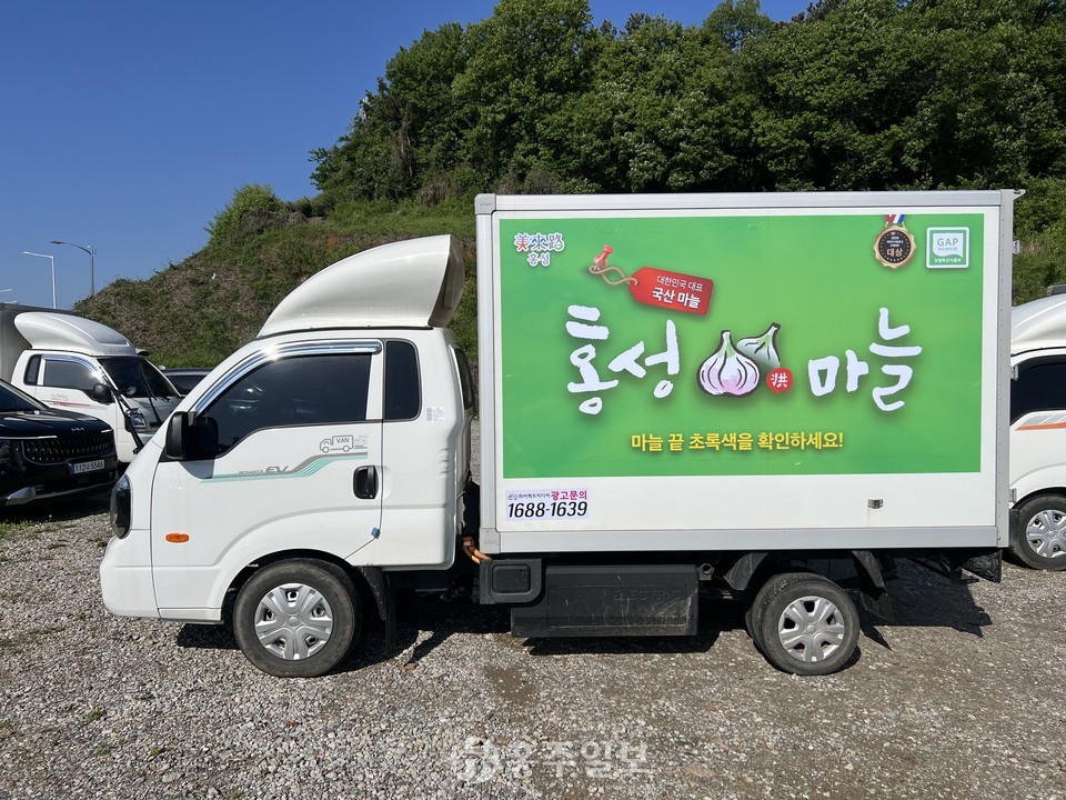 홍성군이 지역 특산물인 ‘홍성마늘’의 홍보를 위해 택배 차량을 활용한 독특한 방식으로 눈길을 끌고 있다. 이번 홍보 활동은 5월부터 10월까지 6개월간 진행되며, 홍성군 관내 운행 중인 1톤 규모 택배 차량 20대에 홍성마늘 랩핑광고를 적용해 ‘이동식 홍성마늘 홍보대사’로 활약하게 된다.<사진>