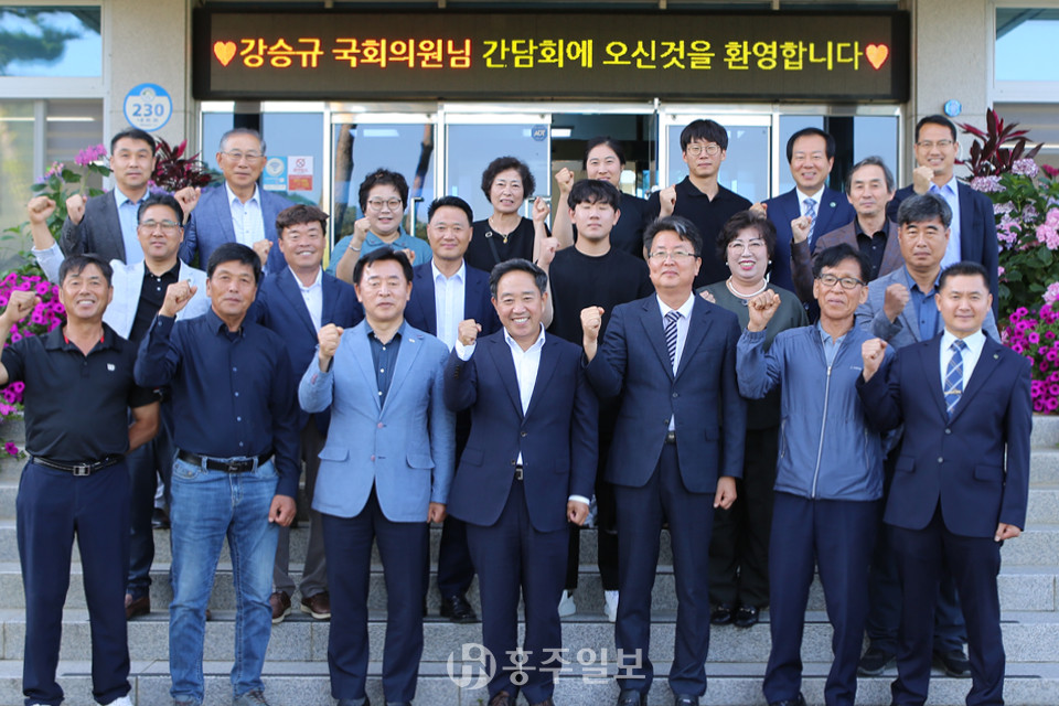 홍성군은 지난달 31일 강승규 국회의원을 초청해 농업인 단체와 함께 군 농업의 발전 방안을 모색하는 간담회를 개최했다.<사진>