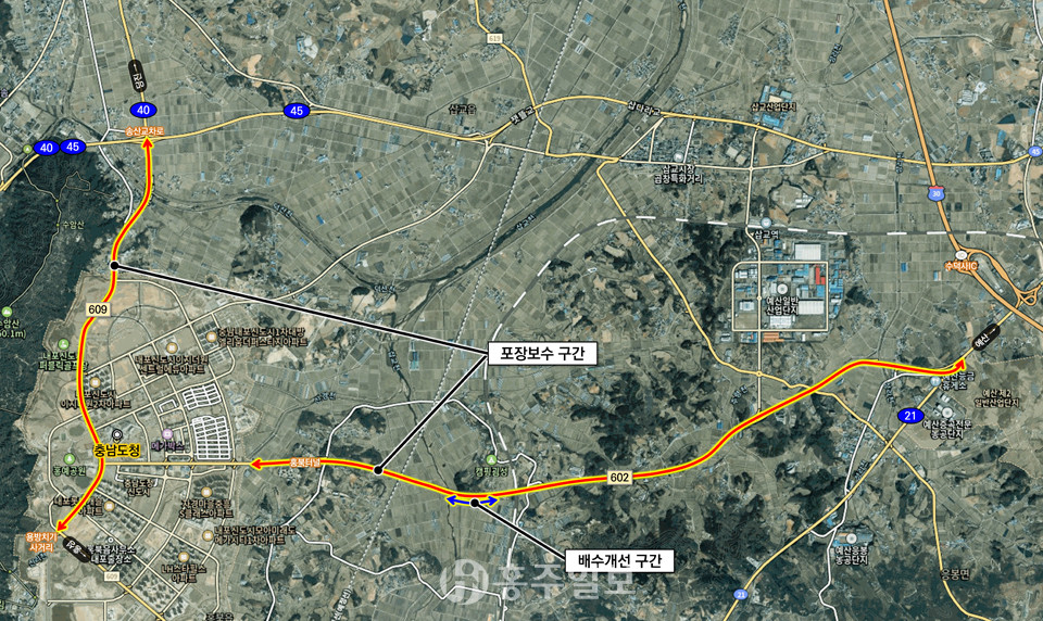 포장 보수 공사는 총 20km, 45억 원이 소요될 예정으로 지방도609호는 국도40호와 교차되는 예산 삽교 송산리 송산교차로부터 용방치기 사거리까지 8km이다.