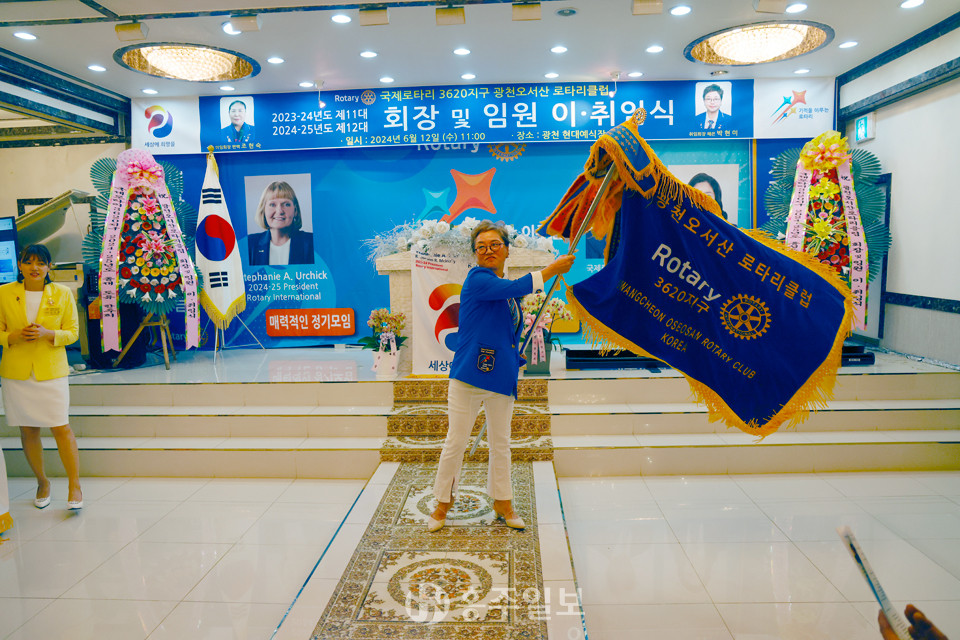 박현미 취임회장은 “2024-25년도 스테파니 얼칙 RI회장의 ‘기적을 이루는 로타리’라는 테마 아래 로타리의 목적과 네 가지 표준에 충실하고 ‘초아의 봉사’를 실천하며 가족과 같은 따뜻한 정이 있는 클럽이 되도록 최선을 다하겠다”고 포부를 밝혔다.