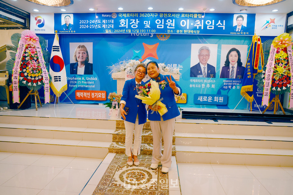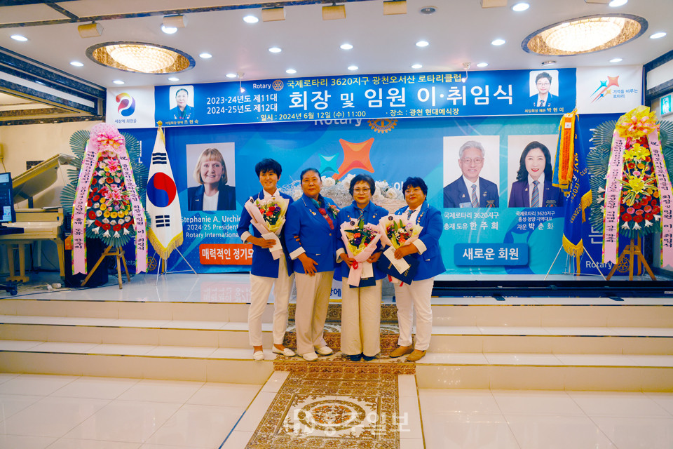 한주희 국제로타리 3620지구 2024-25년도 총재는 “지난 1년간 초아의 봉사를 통해 세상에 희망을 주신 조현숙 이임회장과 박현미 취임회장을 비롯한 클럽 임원 여러분의 노고에 깊은 감사를 드린다”고 전했다.