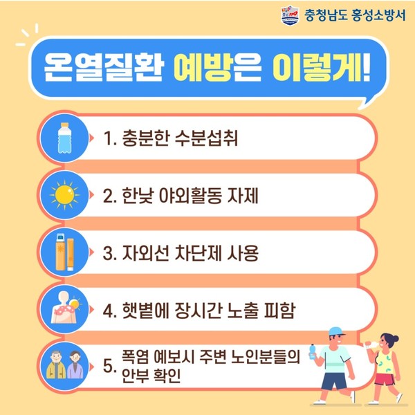 홍성소방서(서장 김영환)는 여름철 폭염으로 인해 발생할 수 있는 각종 온열질환에 각별히 주의를 당부한다고 밝혔다.